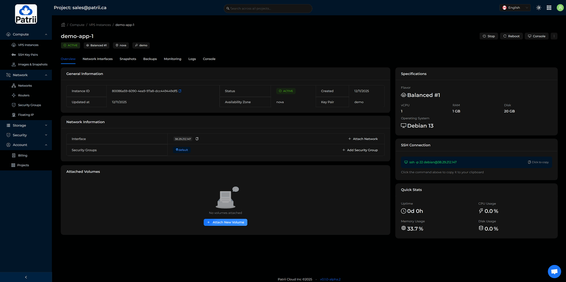 If it runs on a VPS, it runs on Patrii Cloud. The difference is simple. Your data stays in Canada, managed by a fully Canadian team, on an open and transparent platform.
