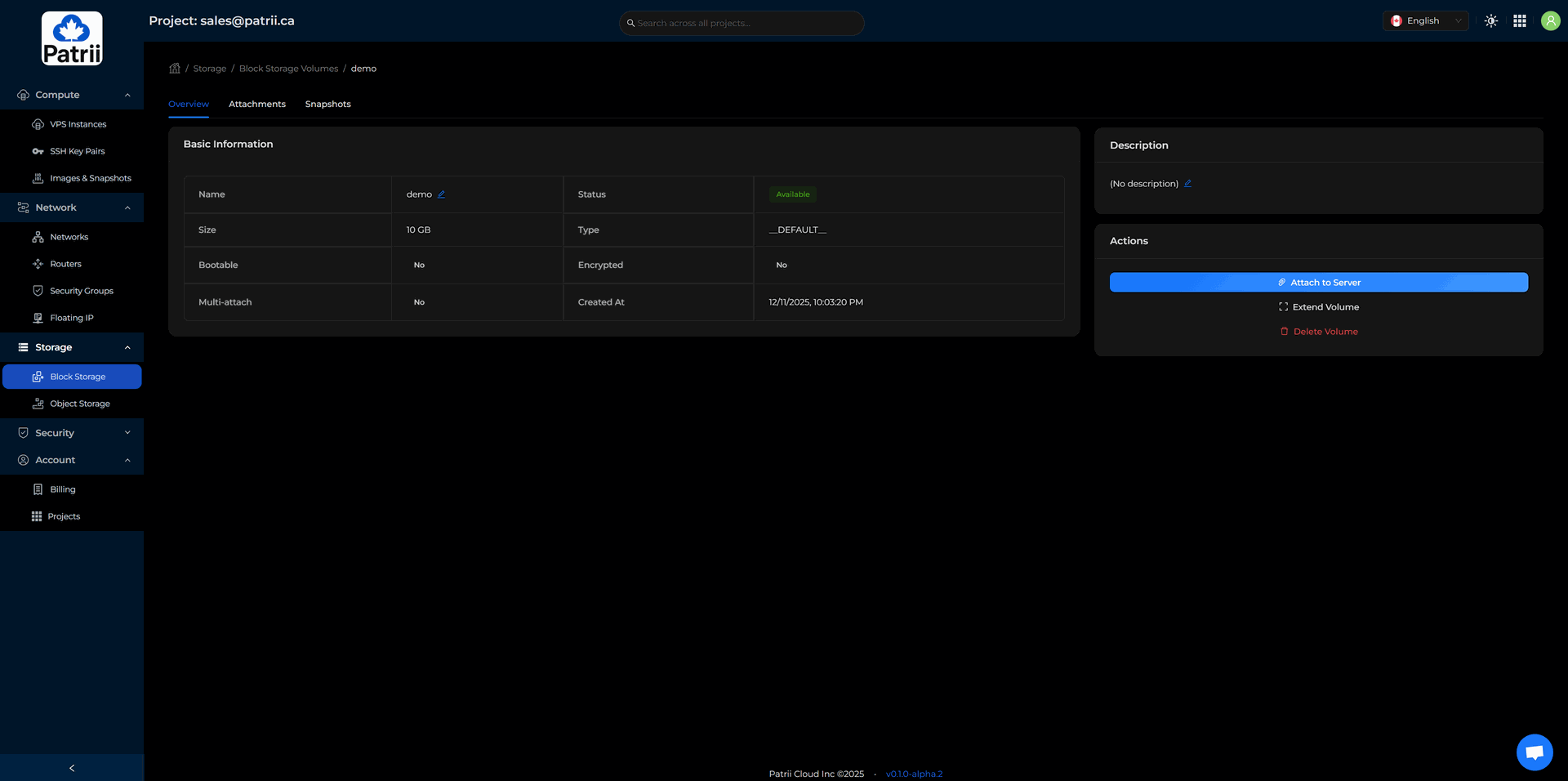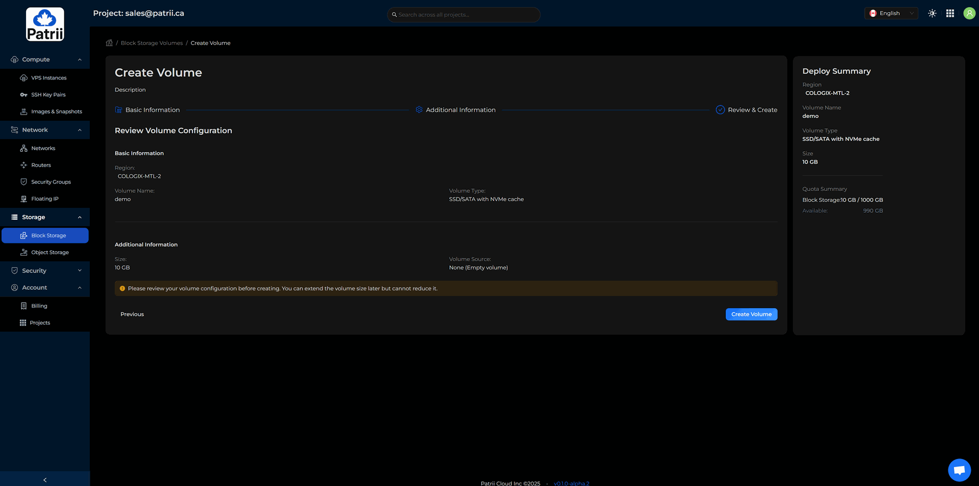 Patrii Cloud uses prepaid quota during alpha so you can reserve the monthly resources you plan to use.